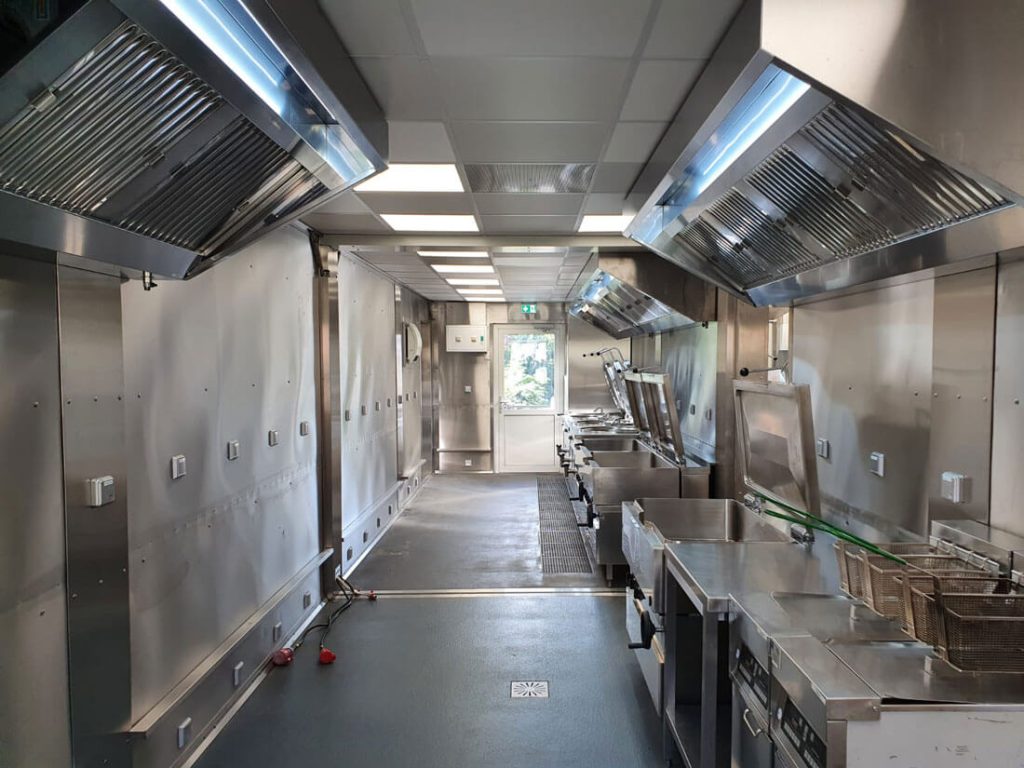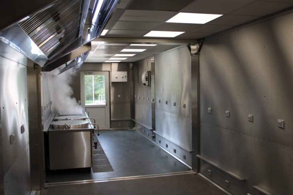 Um die Essensversorgung während der Küchenrenovierung eines Chemnitzer Caterers zu gewährleisten, wurde Kessel Rental mit der Entwicklung einer kompakten temporären Küchenlösung beauftragt. Zu diesem Zweck wurden 7 NxtGen Kitchen Einheiten geliefert, aufgeteilt in eine große Produktionsküche, einen Verpackungsbereich und einen Spülbereich.