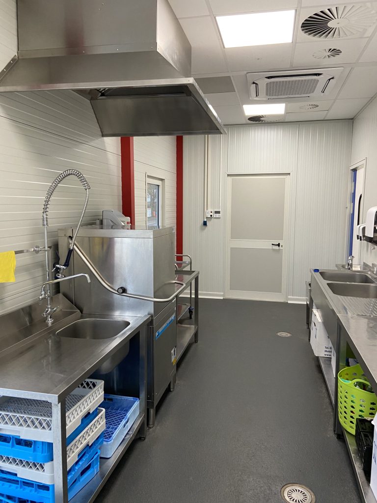 - Küche und Kantine sind mit einem R-12 Anti-Rutsch Boden ausgestattet
